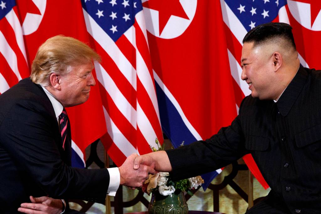 In this Feb. 27, 2019 photo, U.S. President Donald Trump shakes hands with North Korean leader Kim Jong Un in Hanoi. (Evan Vucci | Associated Press File)