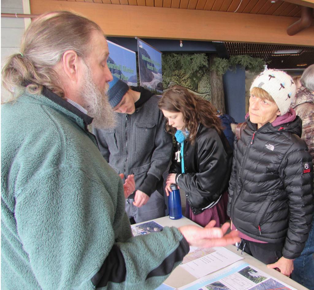 During an open house for a proposed master plan for Mendenhall Valley Glacier Recreation Area and Visitor Center held Saturday at the visitor center, a tentative vision was outlined that would bring expanded parking, boats and docks, a welcome center equipped for concessions, visitor center expansion, a mobile center at the glacier and a number of trail changes and improvements.