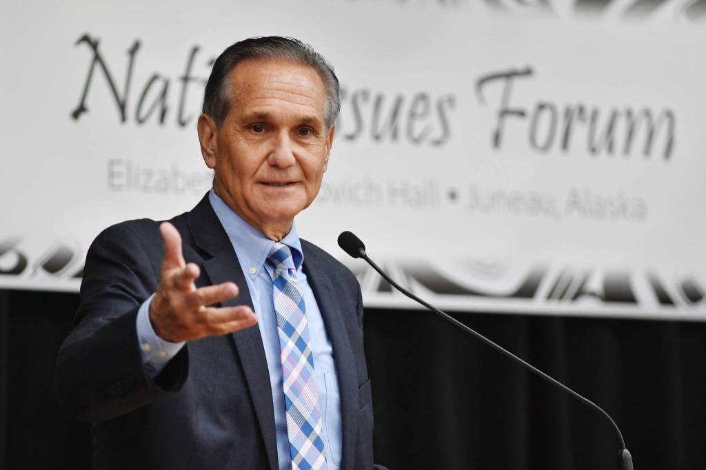 Lieutenant Governor Kevin Meyer is speaking at the Native Issues Forum at the Elizabeth Peratrovich Hall.