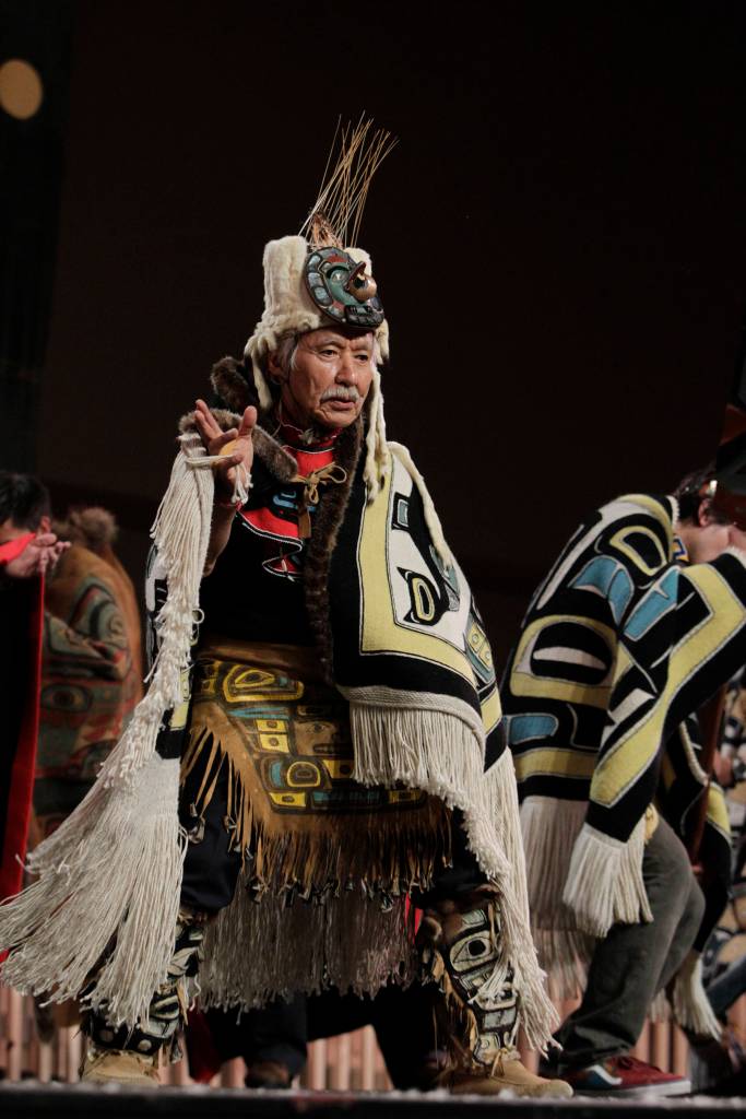 Tlingit artist Nathan Jackson dons regalia at Celebration 2014. Courtesy Photo | Brian Wallace for Sealaska Heritage Institute)