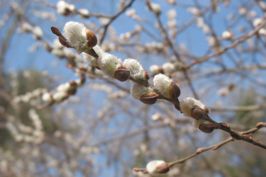 Pussy willows bloom on a branch. (Wikimedia Commons)