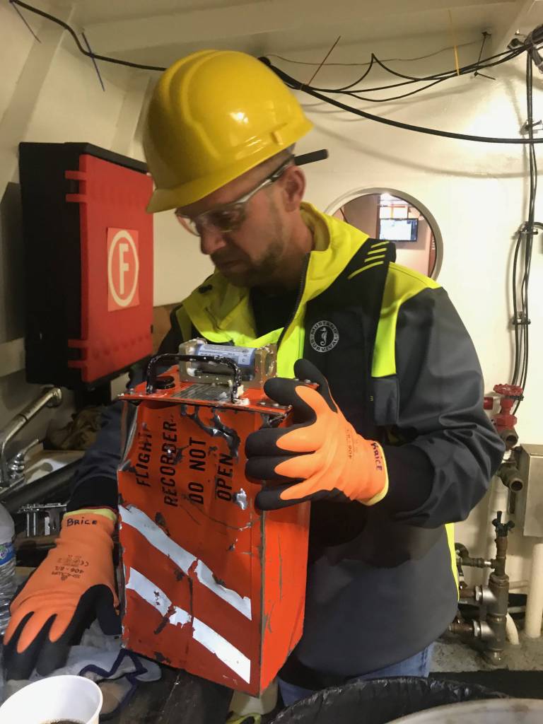 “We’re not sure if it’s actually impact damage or if its water immersion damage,” Johnson said Monday. “However, not all is lost at this point. Right now, our engineers in our cockpit voice recorder lab are working very, very hard to try and recover that information.”