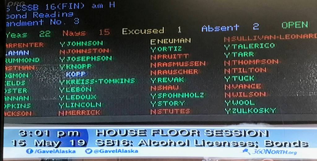 By a vote of 22-15, Hannan’s amendment passes. Eaglecrest will specifically be included in this bill, and will be cleared to serve alcohol if the bill passes. See who voted for it, below.