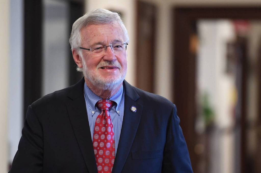 Sen. Gary Stevens, R-Kodiak, arrives for the senate’s floor session on Wednesday, June 5, 2019. (Michael Penn | Juneau Empire)