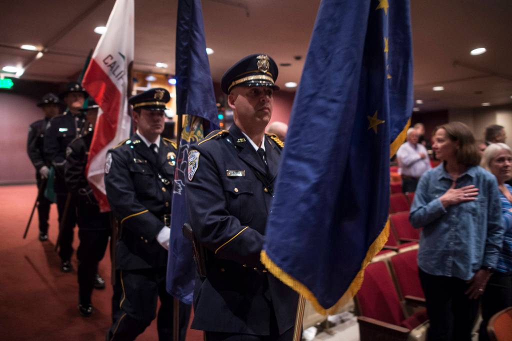 A public memorial service is held for the Guardian Flight crew at Juneau-Douglas High School: Yadaa.at Kalé on Friday, June 7, 2019. Pilot Patrick Coyle, flight nurse Stacie Rae Morse and flight paramedic Margaret Langston were Guardian Flight employees based in Juneau. Morse was pregnant with a child she planned to name Delta Rae. Their King Air 200 disappeared Jan. 29 flying to pick up a patient in the Southeast community of Kake.