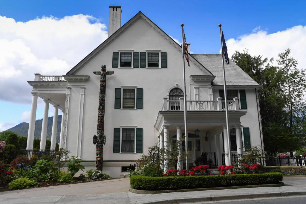 “The Governor’s Totem” is located outside the Governor’s mansion and was carved by Charlie Tagcook of Klukwan and William Brown of Saxman, according to the city museum.