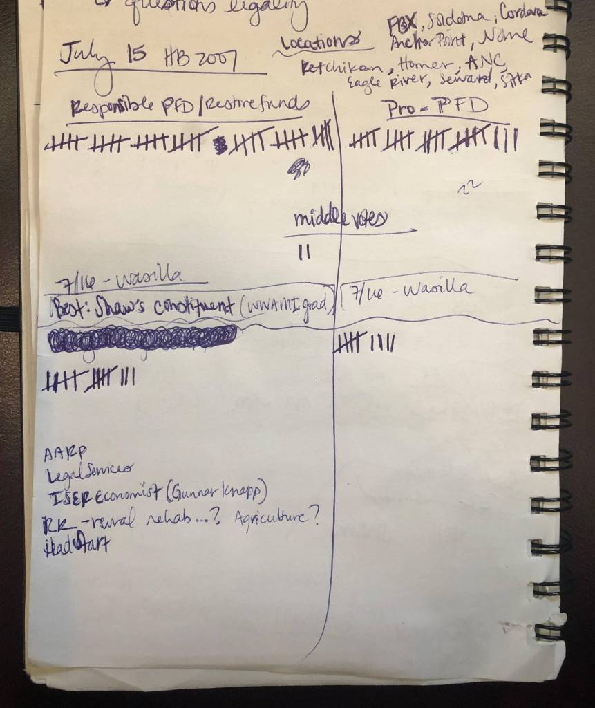 Alyson Currey, one of only a few people to testify from Juneau said that she felt the governor’s vetoes were “reckless” and that “we’ll see more harm to vulnerable Alaskans.” She said she also wanted to thank the legislators who showed up in Juneau earlier this month for trying to find a solution.