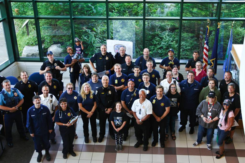 The Juneau Police Department organized participation in the National Night Out for all Juneau public services, including Capital City Fire/Rescue, the Alaska State Troopers, and other uniformed and nonuniformed public services, Aug. 6, 2019. (Michael S. Lockett | Juneau Empire)