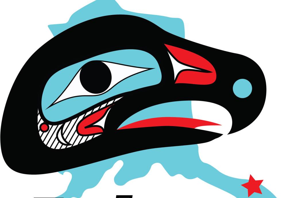 Gone is the orange bald eagle and mountain range set against a blue and black backdrop. Taking its place is a red, teal and black eagle head overlapping a cutout of Alaska.