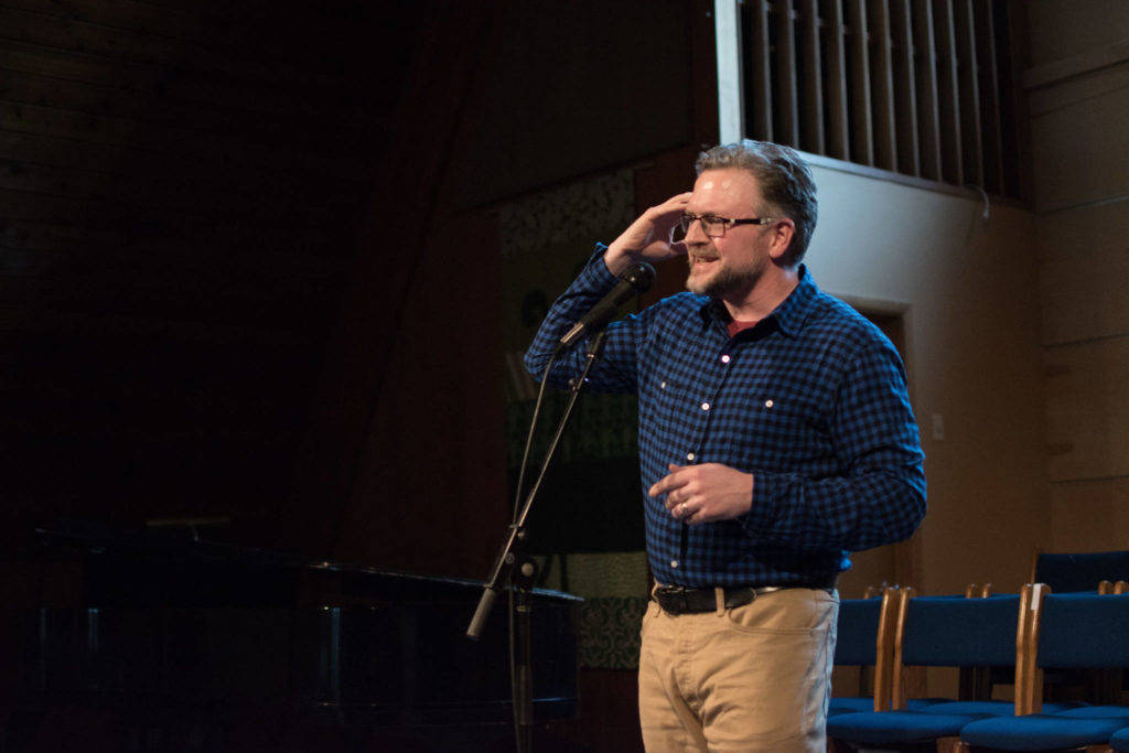 Clint Farr tells a Road Trip story at Mudrooms’ May 2018, event, closing out Season 7. (Courtesy Photo | Melissa Griffiths )