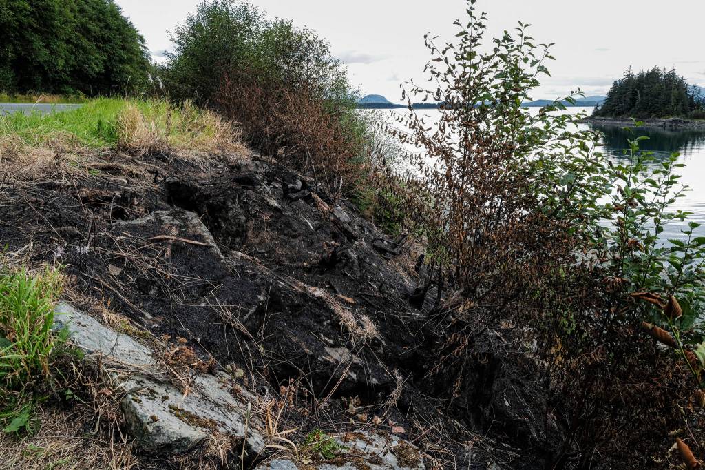 Here, photographs taken Monday depict damage from a wildfire at Sunshine Cove on Friday night. The damage was spread out over a half acre of land.
