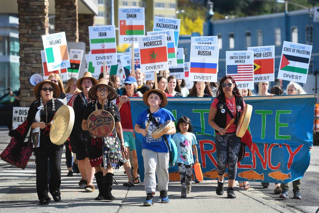 Dozens of other Juneau students participated in the rally by holding signs welcoming international representatives to the capital city and urging them to divest from fossil fuels. The event featured plenty of participation from adults, too.