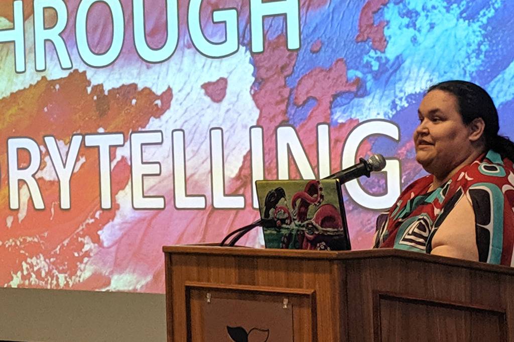 “I never was told, ‘Go write, go create art to heal,’” Starbard said Friday during a lecture at University of Alaska Southeast’s Egan Library. “It was something I discovered myself. If we had the same traditions that we always had, and they were not taken from us, I absolutely would have been taught those things.”