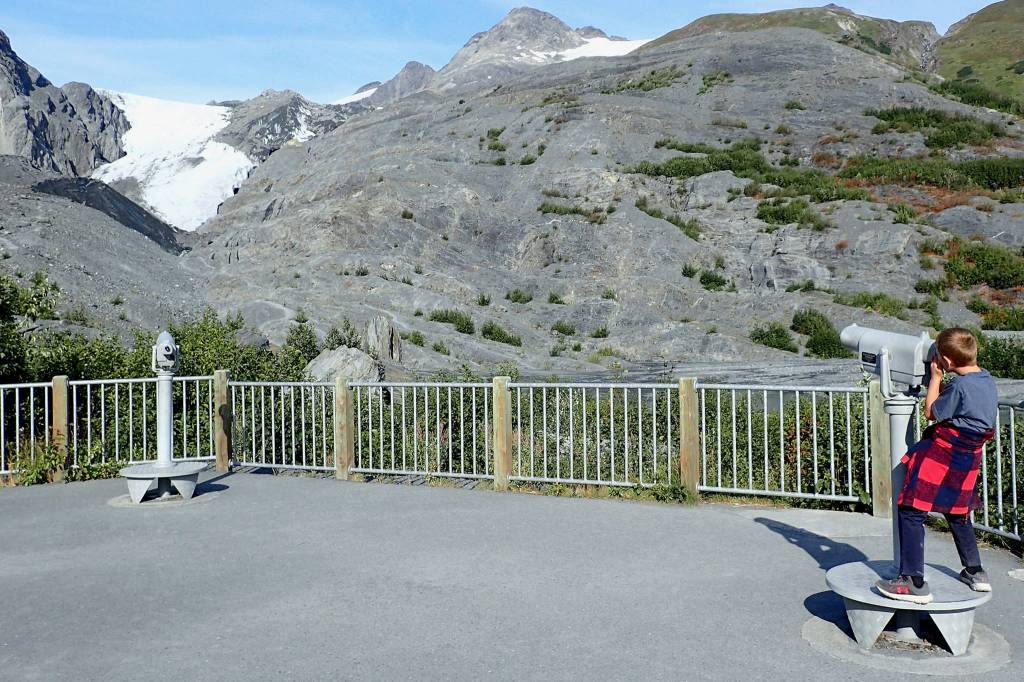 A youngster observes the Worthington Glacier north of Valdez, one of many Alaska glaciers that are quickly transforming into ocean water. (Courtesy Photo | Ned Rozell)