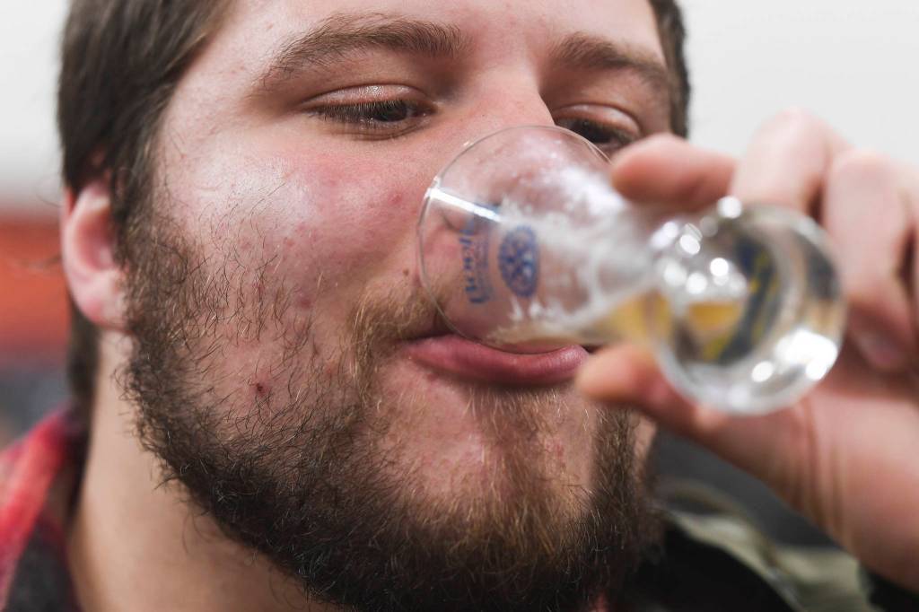 Jesse Miller drains his glass at the Rotary Club of Juneau’s Eighth Annual Capital Brewfest at the Juneau Arts and Culture Center on Saturday, Sept. 21, 2019. Twenty brewing and distribution companies were on hand for the fundraiser to benefit the University of Alaska and Rotary’s service projects, scholarships, international youth exchanges and other project. The event was sold out with 900 tickets sold. (Michael Penn | Juneau Empire)