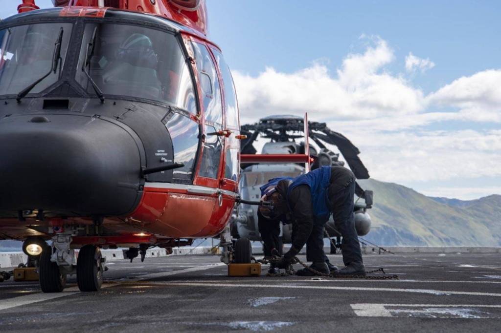 During the Arctic Expeditionary Capability Exercise, the Coast Guard is operating an MH-65 helicopter and HC-130 cargo aircraft from Coast Guard Air Station Kodiak. The Navy has two amphibious landing ships, USS Somerset and USS Comstock, according to a press release. The Marines sent Special Purpose Marine Air Ground Task Force Alaska, drawn from the 1st Marine Expeditionary Force out of Camp Pendleton in California. Additionally, the USCGC Douglas Munro, homeported in Kodiak, is supporting the exercise.
