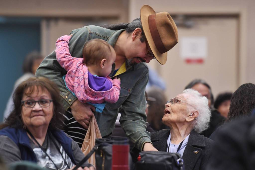 She encouraged Alaska Natives present to learn their languages. A language roundtable discussion and Sharing Our Language Gathering Thursday provided opportunities for that. Events planned for Friday and Saturday also include a presentation from a Tlingit spear-thrower, a Lingít spelling bee, a screening of archival footage of elders and more.