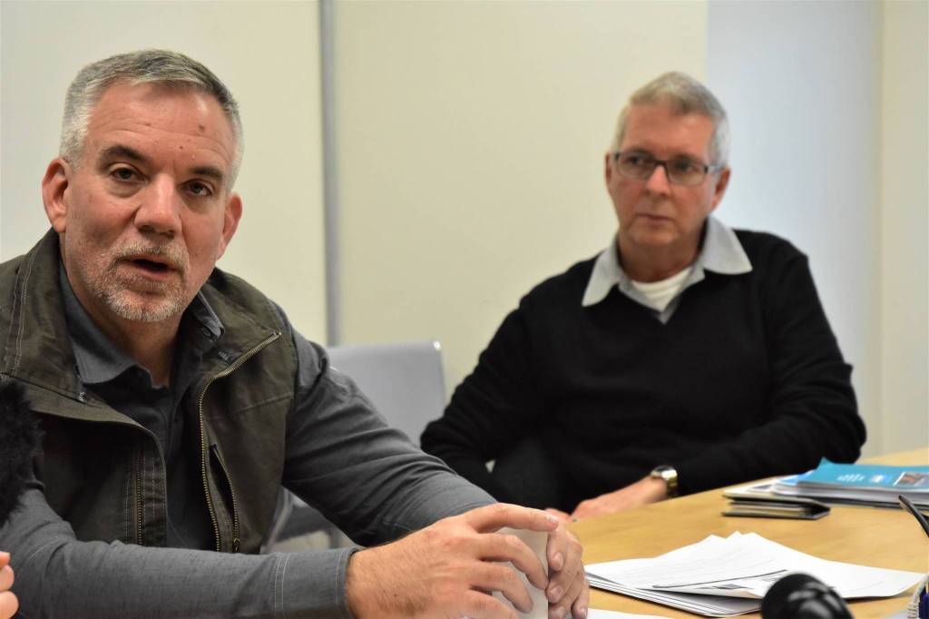 Sherman and his colleague Steve Moeller met with reporters at City Hall following a day of meetings with local officials and community members.