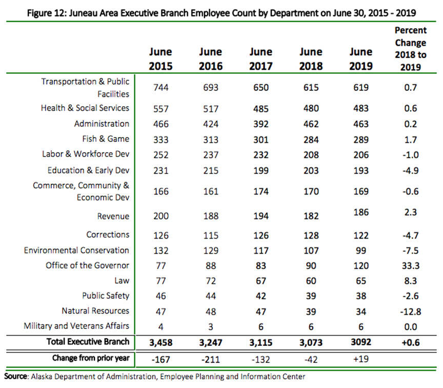 Holst said that data reviewed by JEDC shows basically no change in administrative branch jobs in Juneau from June 2018 to June 2019.