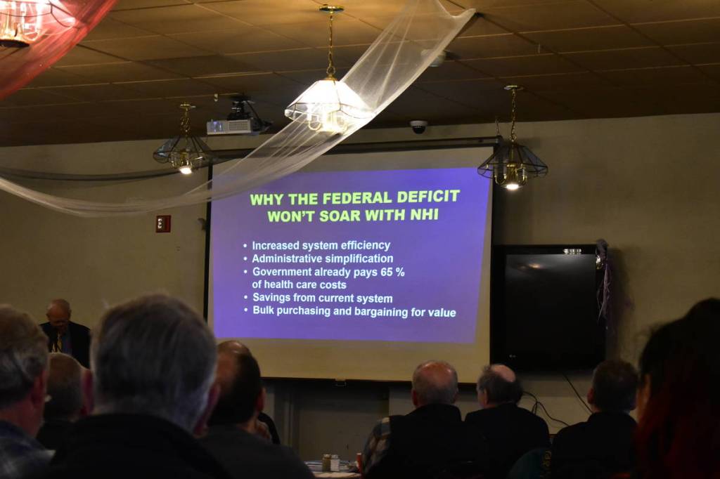 Many members of the audience needed no convincing. Ben Van Alen, a retired biologist, was already a supporter of some form of universal coverage.