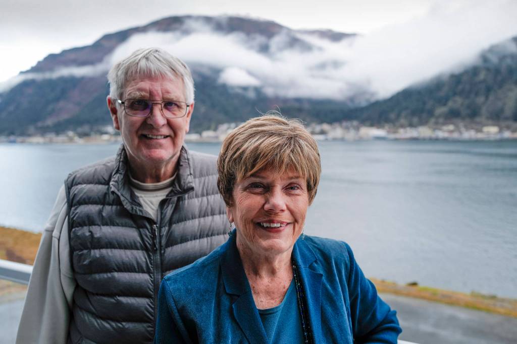 Mary and Jim Becker pose for a picture at their Douglas home on Monday, Oct. 28, 2019. The Beckers were given dual Lifetime Achievement Awards by the Juneau Chamber of Commerce during their annual dinner at Centennial Hall on Saturday. Learn more about them by watching the video below. (Michael Penn | Juneau Empire)