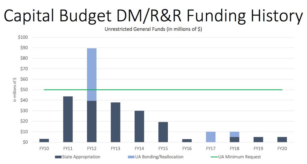 A chart included in the meeting packet showed UA has asked for that amount every year since 2010 and never received more than $45 million. Last year, UA received $5 million.