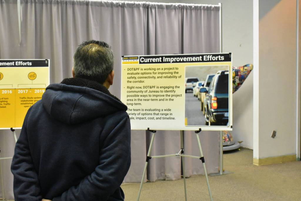 People mingled about, munched snacks and moved from poster to poster, while looking at the Department of Transportation and Public Facilities plans to address concerns about the Egan and Yandukin drives intersection.