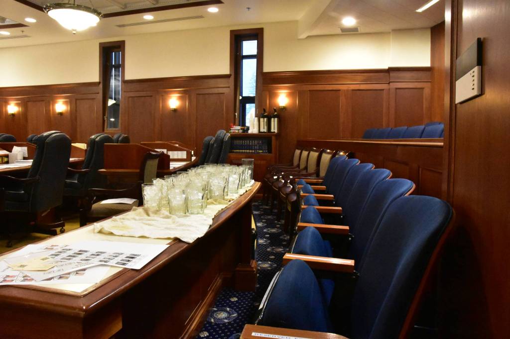 House chambers are packed as the entire Alaska State Legislature gathers for a joint session. The bustle has quieted down as the last few members file in. Staff are trying to make sure everyone who’s present in the building is in the chamber.