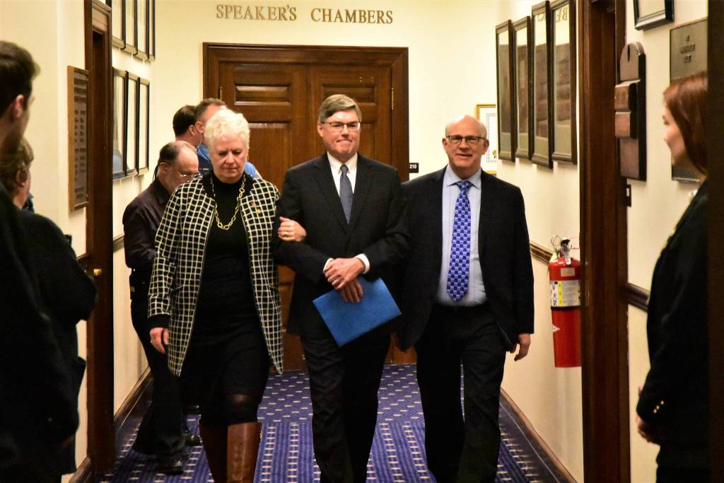 Speaking with reporters following the address, Bolger said he could not comment on the case concerning the effort to recall Gov. Mike Dunleavy because it was ongoing litigation. He did say the court would pursue the matter in a timely fashion.