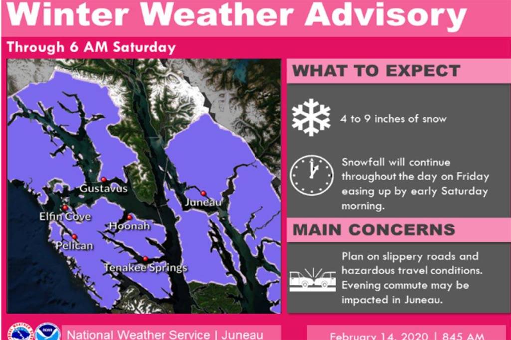“The most snow we expect is for today, 4-9 inches of snow,” Cody Moore, a meteorologist with the National Weather Service in Juneau, said Friday. “It’s not just for Juneau, it’s for much of the northern panhandle.”