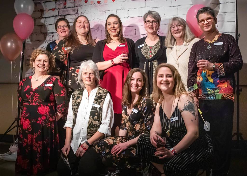 Courtesy Photo | Kerry Howard                                 Juneau Animal Rescue’s board of directors at the “Love is a Four-Legged Word” silent auction. Top row, from left: Mari Meiners, treasurer; Aurora Hauke, secretary; Amy Williams, president; Angela Noon; Janet McCallister; and Jeanette St. George. Bottom row, from left: Samantha Blankenship, executive director; Hazel Reynolds; Sarah Mutter; and Maren Brantner, vice president.