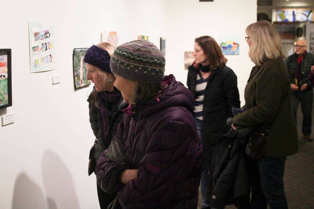 Guests look at the 12x12 art exhibits at the Juneau-Douglas City Museum.
