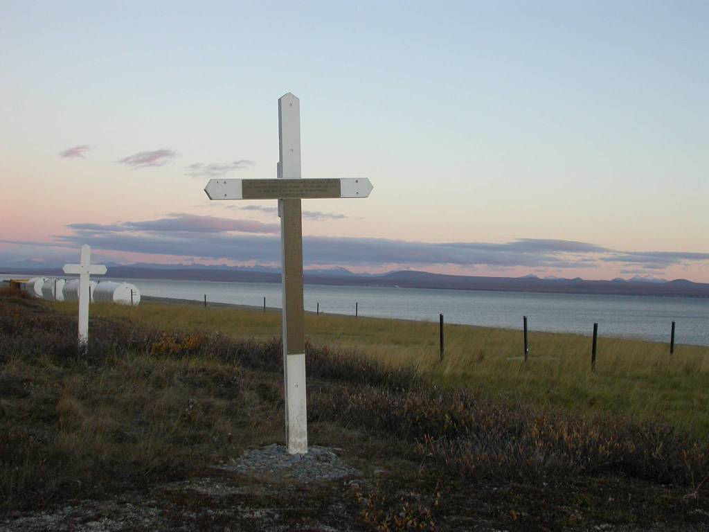 A cross marks a mass grave dug by miners for the bodies of 72 people who died at Brevig Mission in 1918. (Courtesy Photo | Ned Rozell)