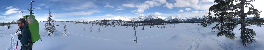 One of the biggest helps for me, in all of this, is the vast outdoors and clean air, water and land we have all around us in Alaska. I’ve spent too much time recently staring at my computer, reading news articles and worrying about people I love. So this last weekend, during an incredibly welcome blue sky day in Southeast Alaska, my partner, our baby, our dog and I set out on a walk into some sunlit, snowy alpine meadows in the Tongass National Forest.