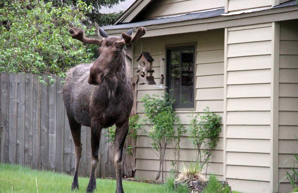 In Anchorage — home to an estimated 300 moose — multiple people have been feeding a yearling moose that’s been hanging around near a Costco in a busy part of town, according area biologist Dave Battle. The animal also has been investigating trash in the area, he said. Officials know it’s the same moose because it has a gash on one of its hind legs, according to Battle.