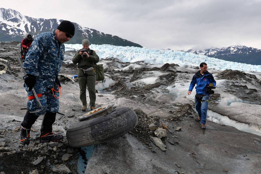 The crash was virtually forgotten until a military training mission spotted a yellow life raft on the glacier. Efforts began in 2012 to scour the glacier to see what else may have churned up, including human remains and other debris.