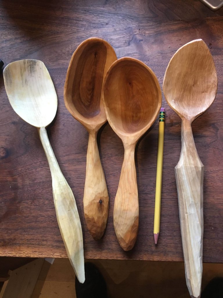 Henry Webb is a woodworker and furniture maker who enjoys using hand tools. He uses mostly green local hardwood to make spoons. His work will be displayed at Coppa for First Friday. (Courtesy Photo / Coppa)
