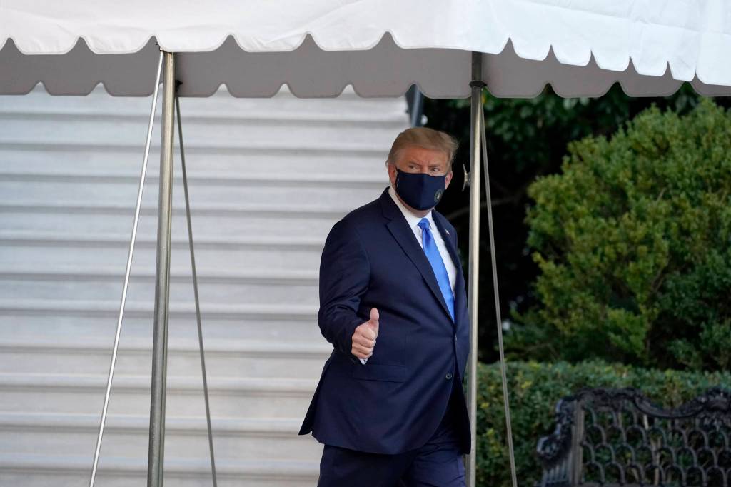 President Donald Trump gives a thumbs-up as he leaves the White House to go to Walter Reed National Military Medical Center after he tested positive for COVID-19, Friday, Oct. 2, 2020, in Washington. (AP Photo / Alex Brandon)