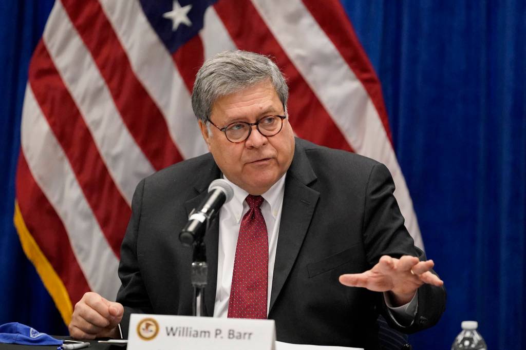 U.S.Attorney General William Barr speaks during a roundtable discussion on Operation Legend, a federal program to help cities combat violent crime, Thursday, Oct. 15, 2020, in St. Louis. Barr also spoke via recorded message at the annual Alaska Federation of Natives Convention. (AP Photo / Jeff Roberson)