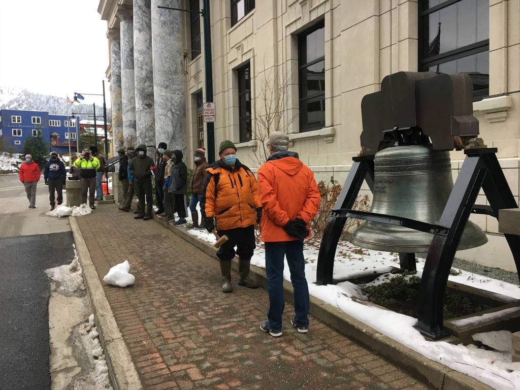 The local chapter of Veterans for Peace recognized Armistice Day by gathering and ringing the bell at the Alaska State Capitol downtown.