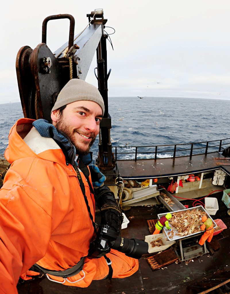Chris Miller photographing the Bering Sea crab fishery. (Courtesy Photo / Chris Miller)