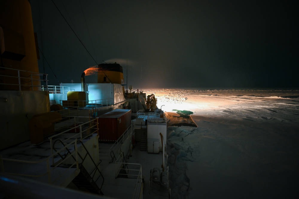 The fun doesn’t stop when they hit the ice, Woitrya said. Visibility is key for the crew of the icebreaker to avoid older and therefore thicker areas of ice and travel the route of least resistance. And in the Alaska winter, visibility can be hard to come by.