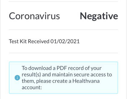 This screenshot shows negative COVID-19 test results for a test taken on Jan. 2. A greater proportion of Juneau residents have been receiving similar results in recent days, according to city data. Test positivity is now below 1%. (Screenshot / Juneau Empire)