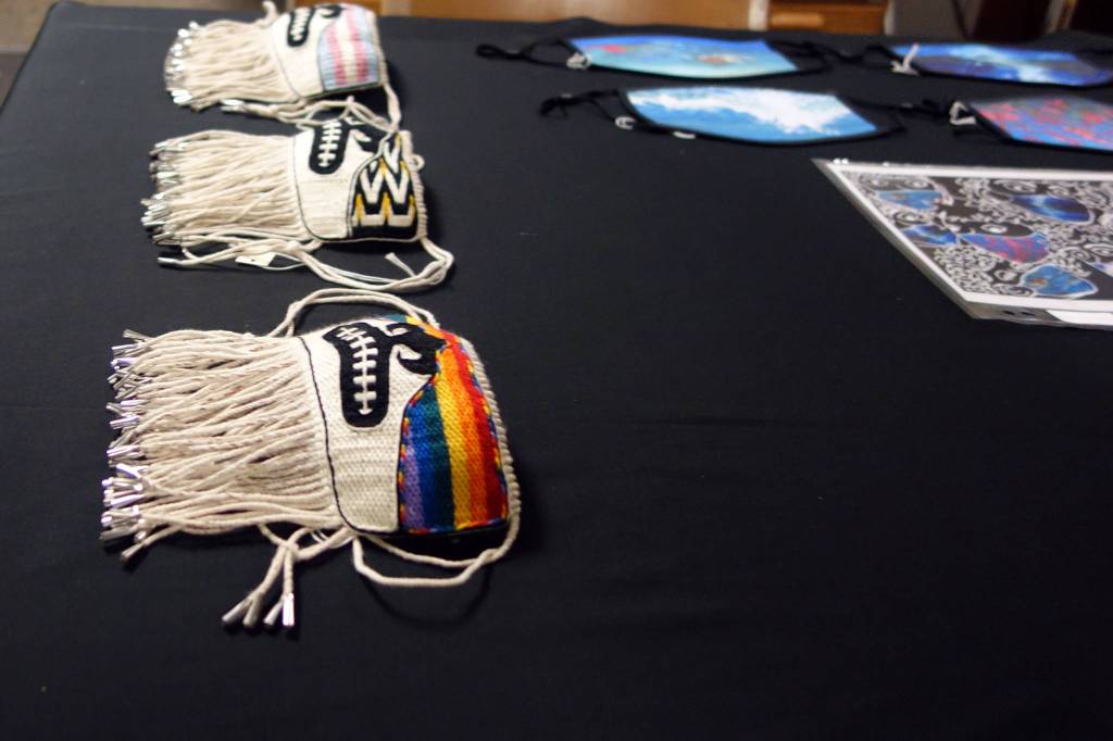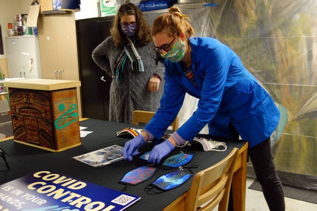 The Juneau-Douglas City Museum is collecting a variety of masks for a future exhibit on how the COVID-19 pandemic affected life in Juneau. Artist Lily Hope created these Chilkat Warrior Masks. (Dana Zigmund/Juneau Empire)