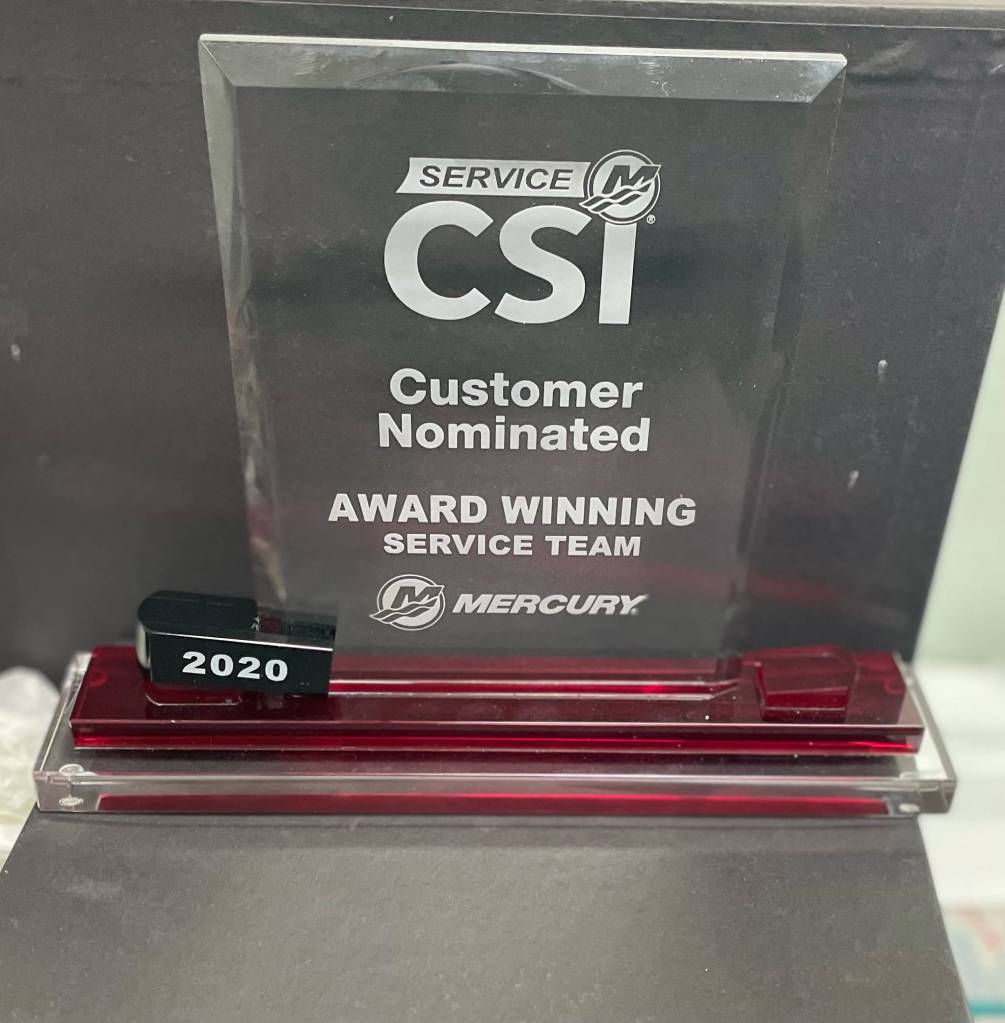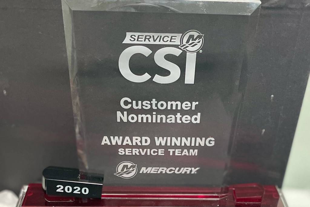 The award recognizes Mercury dealers who meet criteria, including being a Mercury Premier or Certified Service level dealer; meeting the minimum amount of Service CSI surveys returned in a year; and maintaining a rolling 12-month average of a CSI score of 94 or higher, according to Mercury Marine.