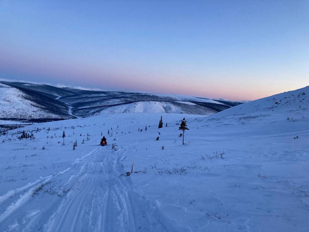 We had broken trail through a saddle between two windswept knobs where the snow was at least three to five feet deep. There was no hiking through that. We’d flail at best. It had never been more important that I kept tabs on my warmth and my skis on the path my buddy, Harrison, was carving with his snow machine. He’s the Fairbanks resident. He knows this program.