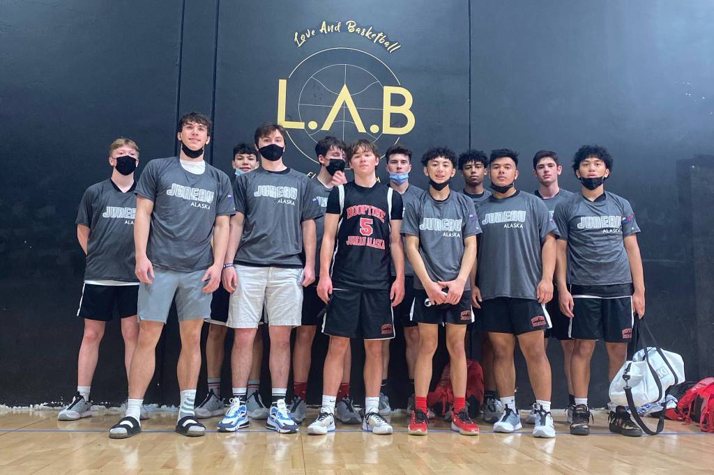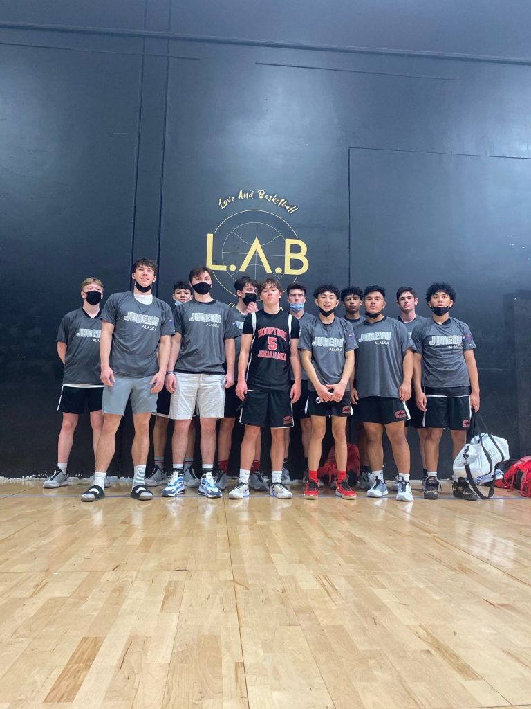 Members from the Juneau-Douglas High School: Yadaa.at Kalé boys basketball team traveled to California to compete in an independent tournament on March 26, 2021 after high coronavirus levels squashed their hopes of going to the Alaska state championship. (Courtesy photo / Zoey Kriegmont)