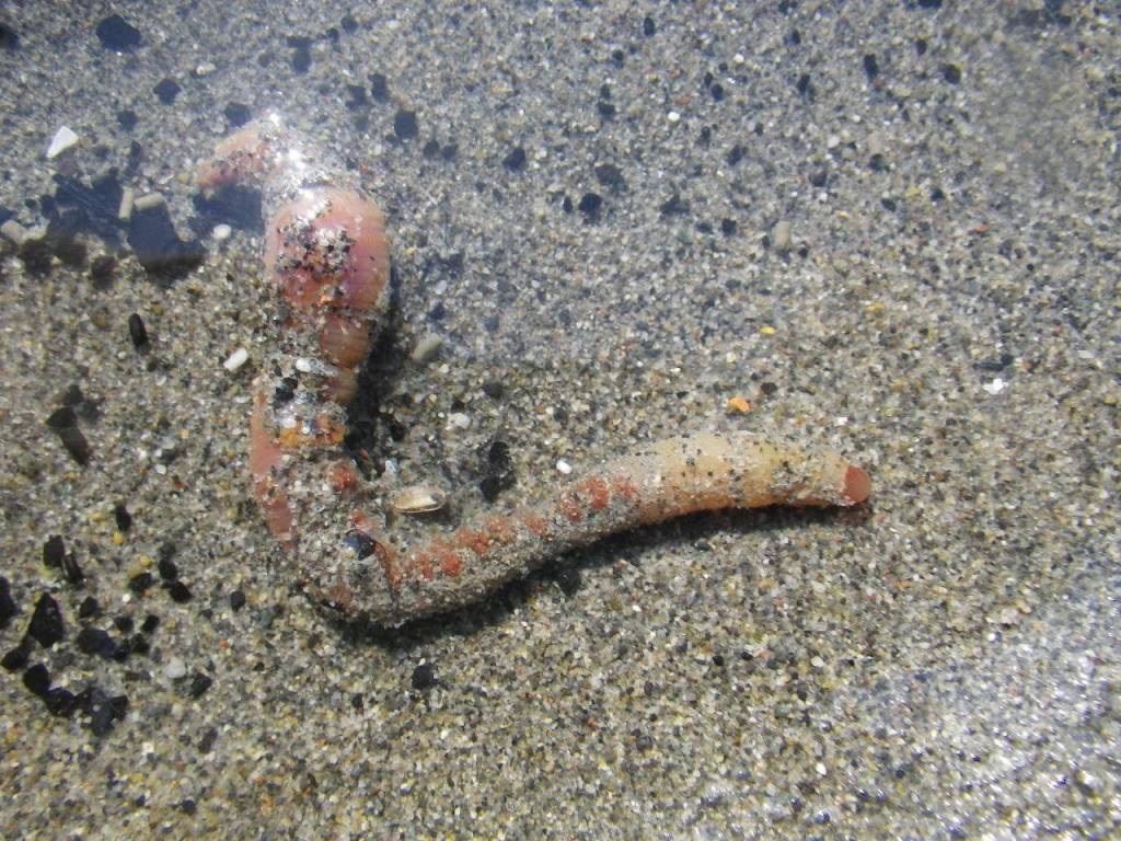 Along the bank of the lower river, we found a lugworm, lying on the sediments. I don’t know why it was there — they normally they live in J-shaped or U-shaped tubes within the sediment, although they can move out and build a new tube at times.