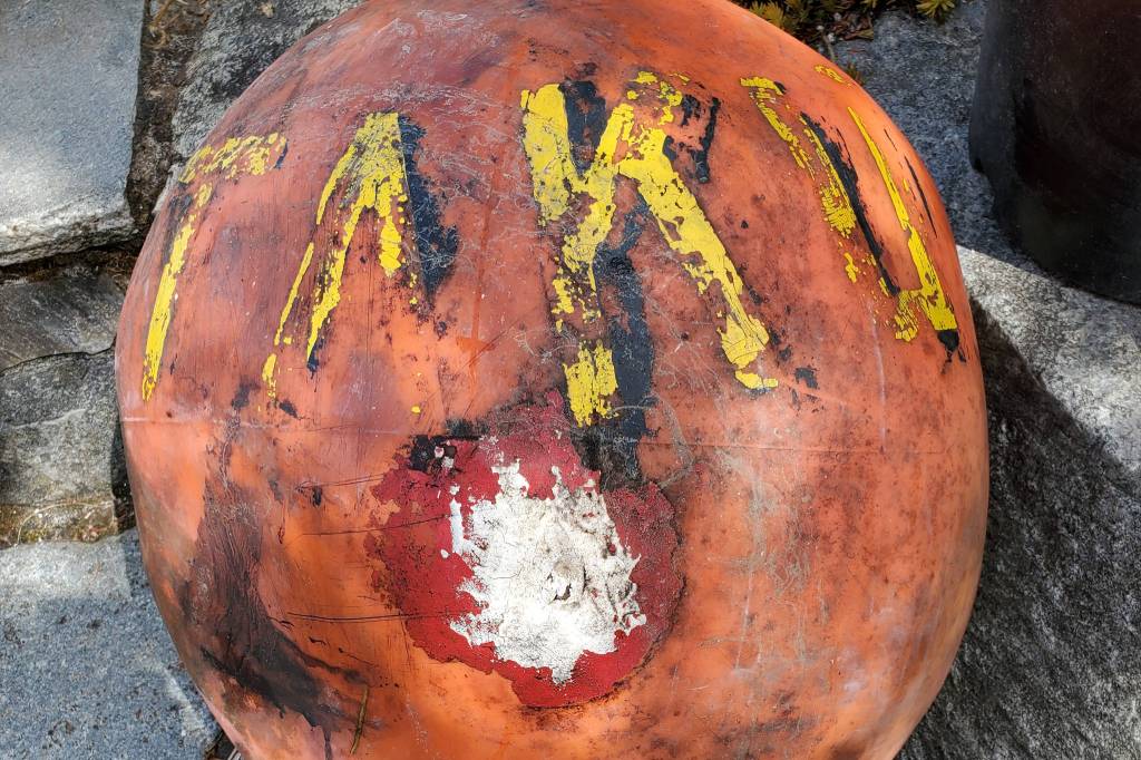 When Karla Patten was looking at the beach at low tide outside her Olympia, Washington, home, she was surprised to discover a float with the word “Taku” painted on it.