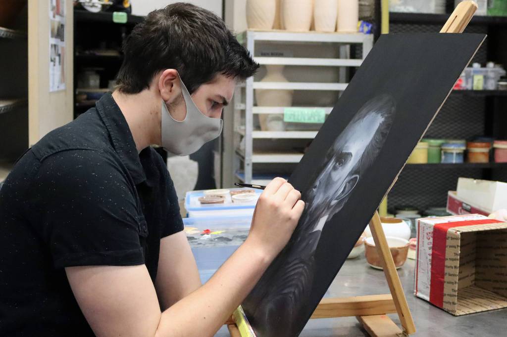 “Growth! That is the best word I can use to describe Garrett. Every time he walks into the art room, he has grown an inch in height. But more importantly, has been his growth in painting. Garrett has worked hard with portrait painting and proportions of the human figure to get to the level he is at now. The art room is flooded with Garrett’s studies on canvas, walls, and sketch pads from over the years. These studies show a timeline of incredible growth in just three years,” Imboden said via email. “One more high school year to go, and one more year to watch such exponential visual growth out of a persistent portrait painter.”